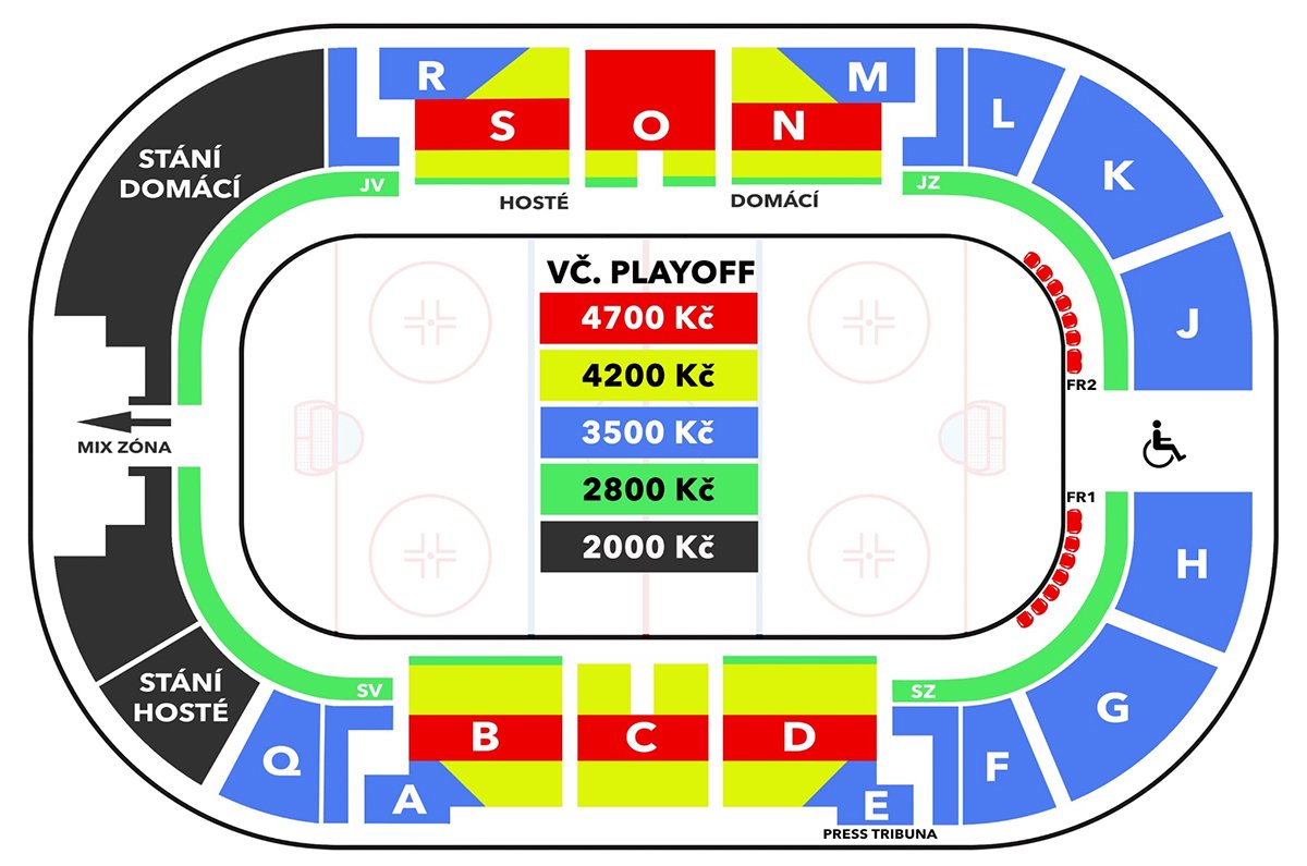 - Nárok na vstup zdarma: Volný vstup má vozíčkář + jedna osoba jako doprovod (omezená kapacita míst). Pro vstup na utkání je třeba vyplnit registrační formulář, který je fanouškům k dispozici vždy v polovině měsíce před daným utkáním.
