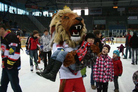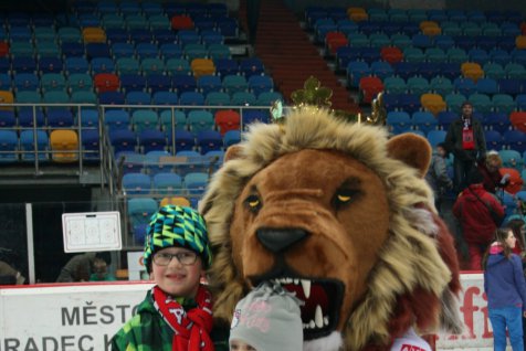 Hokejový klub Mountfield HK si navíc přichystal jedno překvapení. Od nynějška bude na zápasech přítomen i nový maskot, který byl právě v sobotu představen. Lev se jmenuje Mounty, jméno si vybrali sami fanoušci na sociálních sítích klubu.