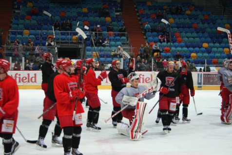 Sobota byla ve znamení pohodové atmosféry. Východočeští fanoušci mohli přijít od půl desáté na zimní stadion, kde probíhal Den otevřených dveří. Kdo přišel, rozhodně nelitoval. Návštěvníci mohli vidět například ukázkový trénink, kabinu A-mužstva, komentovanou prohlídku skyboxů Ing. Martinem Soukupem a poté si mohli se svými oblíbenými hráči dokonce i zabruslit a vyfotit se přímo na ledové ploše. K dispozici byly i podpisové hráčské karty.
