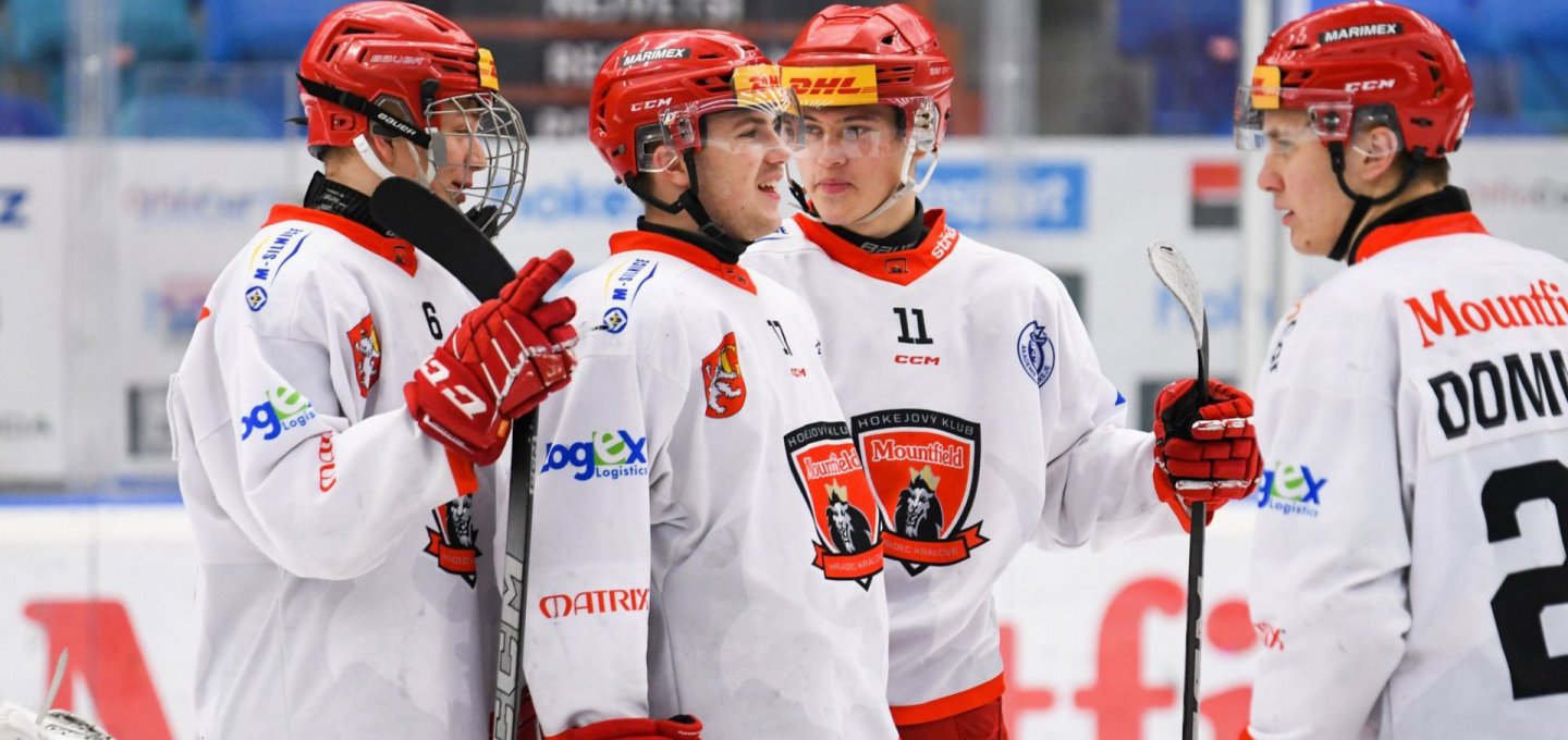 Nejstarší mládežnická kategorie Východočechů zažila velmi povedený listopad, podařilo se jim totiž vyhrát pětkrát v řadě. Nejdelší vítězná série do té doby přitom činila pouhé dva duely. V minulém týdnu však svěřenci trenérského tandemu Martin Vágner – Jan Zachrla po 27 dnech poznali pocit porážky. V Českých Budějovicích ztratili vedení 2:1 a nakonec Motoru podlehli stejným rozdílem jako A-tým: 2:4. Venkovní sérii pak junioři zakončili na ledě Plzně. Do tohoto duelu vstoupili lépe něž soupeř a díky trefám Dommerse a Práška vedli v polovině utkání o dvě branky. Náskok si ale nechali vzít a rozhodovat musely nájezdy. V nich byli Hradečtí úspěšní, vrátili se na vítěznou notu a stále ještě bojují o postup do vyšší nadstavby. Od něj je čtyři kola před koncem základní části dělí pouhých pět bodů.