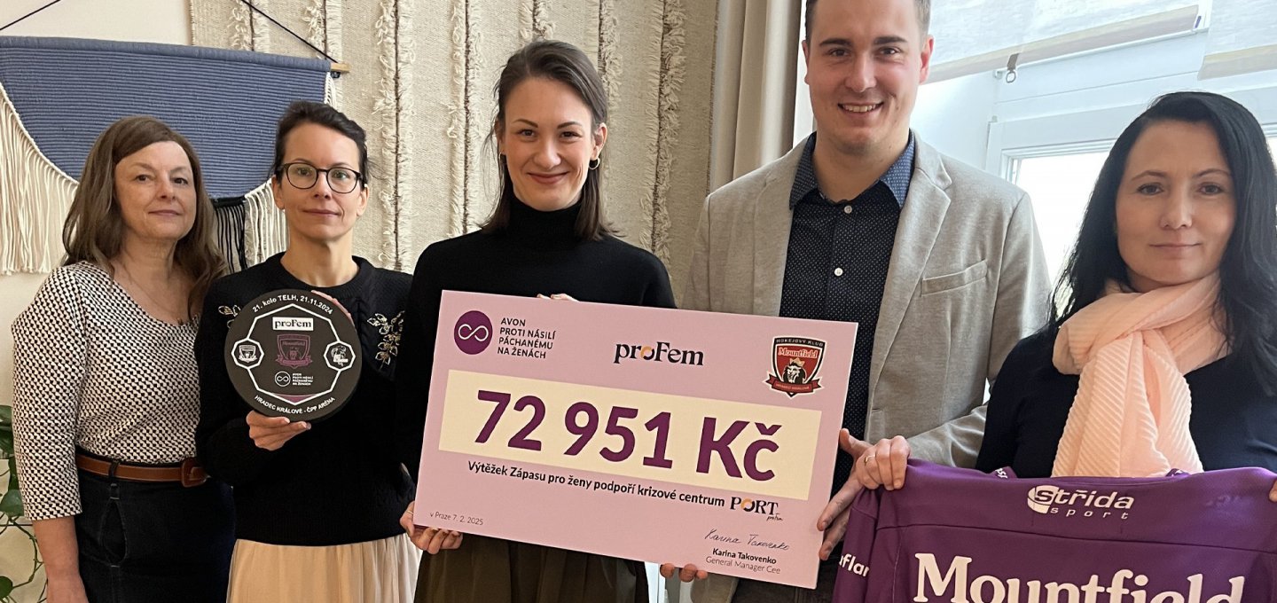 V listopadu odehrál Mountfield HK speciální duel, který byl věnován ženám. A zejména boji proti násilí na ženách. Hráči A-týmu nastoupili ve speciálních fialových dresech, nechyběla ani sbírka nebo osvěta mezi královéhradecké příznivce. Hokejový klub nyní předal výtěžek na podporu služeb organizace proFem, která se již více než 30 let věnuje pomoci obětem domácího a sexuálního násilí. V centru PORT jim zprostředkovává například krizový byt, právní a sociální poradenství či systém POL POINT – kontaktní místo policie.