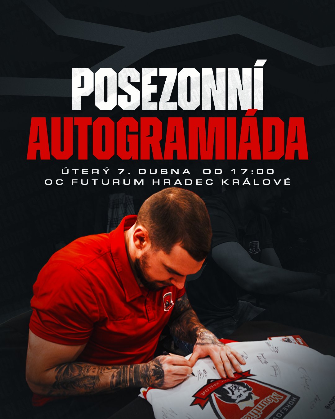 Hlavní je ale autogramiáda kompletního týmu! Dorazte si posbírat autogramy vašich oblíbených hráčů a naposledy se s nimi pozdravte před letní přestávkou! Na viděnou v úterý ve Futuru!