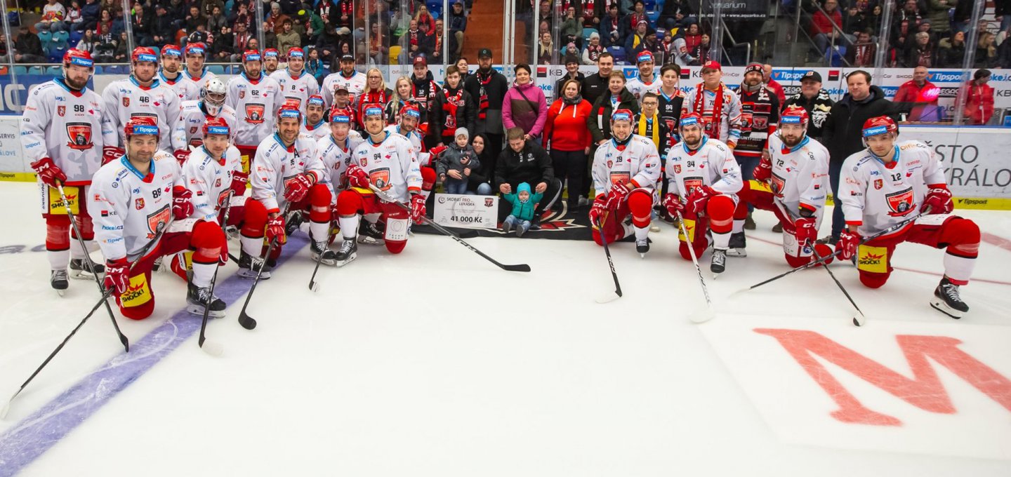 V předchozích sezónách rozebrali příznivci nejen hradeckého hokeje všechny vystavené puky do jednoho a nejinak tomu bylo i letos. V ročníku 2016/17 vynesla charitativní akce Skóruj pro... pěti dětem – Fandovi, Pepíkovi, Vojtovi, Radimovi a Matějovi – celkem 157 tisíc korun. O rok později se dočkaly tři nemocné děti – Péťa, Ella a Janička – dohromady 88 tisíc korun. Během ročníku 2018/19 jsme skórovali pro Marušku, Davídka, Laurinku a Matyáška a přispěli celkovými 181 tisíci korun. Rok poté zase pro Davida, Kubu, Patrika a Viktorku dohromady 136 tisíci korun, během předloňského play off pro Sašu 37 500 korun. V ročíku 2021/22 se dočkala Natálka a Deniska dohromady 93 500 korun. V sezoně 2022/23 jsme pomohli Šimonovi, Zorce a Patričce částkou 106 500 korun, naposledy se pomohlo Jonatánkovi částkou 45 000 korun a Lukáškovi částkou 41 000 tisíc.