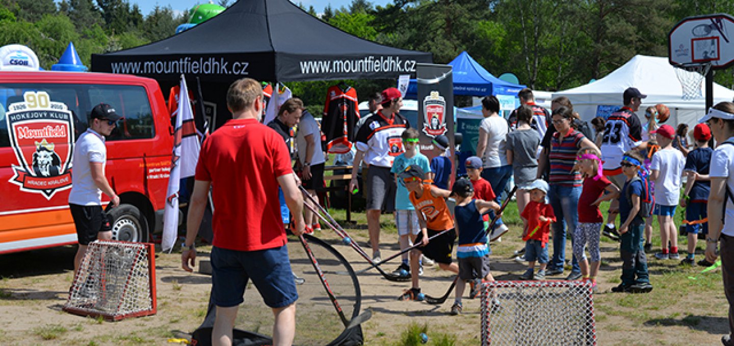 Hradecký hokejový klub se na akci prezentoval po celou dobu jejího konání, děti si mohly zastřílet na branku, zaházet na koš, vyzkoušet si hokejovou výstroj, pozdravit se s Mountym, vzít si některé z upomínkových předmětů nebo se dozvědět informace o chystaném kurzu bruslení přímo z úst mládežnických trenérů a hráčů.