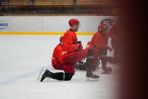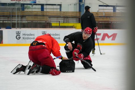 Na začátek letní přípravy na ledě absolvovali hráči obvyklý start: Nejprve se soustředili na bruslení a práci s holí, postupně se v rámci cvičení dostali i ke střelbě na branku. A nakonec si taky v obranném pásmu vyzkoušeli dle barev dresů hru dva na dva. Motivace? Obrovská! Poražený tým totiž následně na závěr tréninku bruslil víc. Hráči ale nakonec všechno zvládli a poctivě odbruslili.