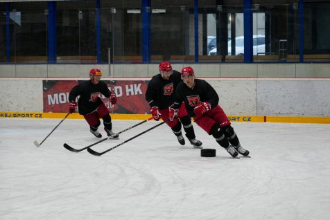 Horké pondělí 21. července ukončil v podvečer déšť. A tou dobou už se hokejisté Mountfieldu proháněli po ledové ploše v malé hale ČPP Arény. Svěřenci Tomáše Martince absolvovali tréninkovou jednotku po skupinách a pod velením specialisty na bruslení Patrika Stehna.
