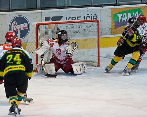 V neděli přijel na led hradeckých juniorů zkusit štěstí Jindřichův Hradec. Ten nastoupil s pouze dvanácti hráči v poli, což se na jeho výkonu určitě podepsalo. Domácí šli do vedení dvěma slepenými...