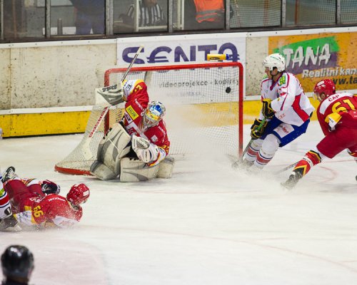První zápas v historii nového extraligového klubu Mountfield HK se odehrál ve Znojmě, na ledě účastníka mezinárodní EBEL ligy. Trenéři do něj poslali sestavu bez většiny zkušenějších hráčů, přesto se...
