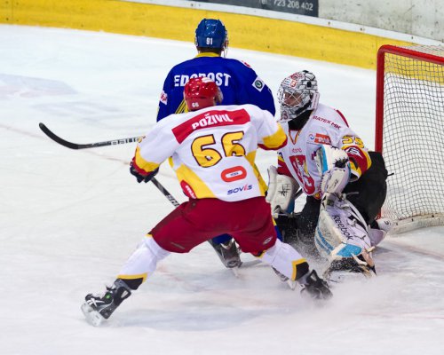 Hradečtí hokejisté v sobotu ukončili na domácím ledě čtvrtfinálovou sérii s Vrchlabím. Po bezbrankové první třetině se domácím podařilo vstřelit dvě branky v té třetí. Nejprve Martin Koudelka využil...