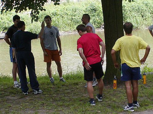Hráči poslouchají pokyny trenéra Pazourka