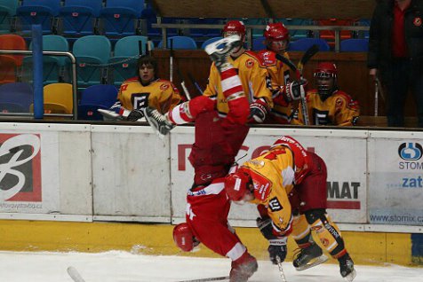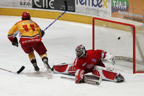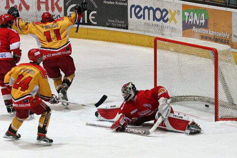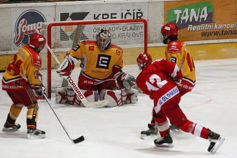 V dohrávce odloženého prvního kola extraligy juniorů přivítali hokejisté Hradce na svém ledě Olomouc. V první třetině šli dvakrát do vedení hosté, vyrovnat se Hradci podařilo až na začátku druhé části hry. Celkově byla k vidění velice vyrovnaná partie, ve které byli na obou stranách pozorní brankáři. A to zejména ve druhé třetině, kdy se šance přelévaly ze strany na stranu. Vývoj utkání se neměnil ani po většinu třetí části hry, Hradec dotahoval náskok soupeře i potřetí. Vše nasvědčovalo tomu, že se bude prodlužovat. Ale hrdinou zápasu se nakonec stal Jiří Šimoníček, který v poslední minutě proměnil trestné střílení a zajistil domácím výhru.