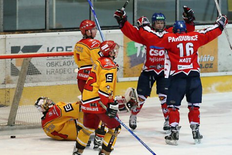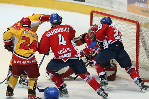 Východočeské hokejové derby juniorů se odehrálo v pátek v Hradci Králové. Již od začátku utkání naznačili hráči obou týmů, že v utkání padne hodně branek. A také se tak stalo. Divokou přestřelku vyhrály Pardubice 6:4, když si rozhodující dvoubrankový náskok vytvořily ve druhé třetině. V zápase s nasazením na obou stranách rozhodovaly zejména přesilové hry, v nichž padlo sedm branek z deseti. Pardubické nezviklal ani fakt, že domácí stačili vyrovnat na 4:4 a trpělivým výkonem si došli pro vítězství.