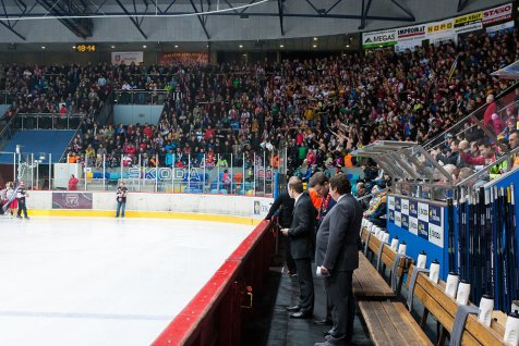 Ještě před utkáním poděkoval předseda představenstva Miroslav Schön všem fanouškům za podporu v roce 2013 a oznámil jim šťastnou novinu v podobě prodloužení kontraktů s Jiřím Šimánkem a Reném Vydareným. Když už se mohlo hrát, nedovolili to „fanoušci“ brněnské Komety, kteří zaházeli led a ještě dýmovnicemi zamořili vzduch na hradeckém stadionu.