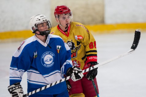 Hosté se zvedli v přesilovce, Srnského pas ale nedokázal Kerekanič usměrnit do odkryté část brány. Následný tlak druhé hostující formace ustáli hráči z největšího východočeského města díky Bernartovi, který si po pokusu hostů místo u tyčky pohlídal. Chvíli poté udeřilo na druhé straně. Na 3:1 zvýšil ve 35. minutě z dorážky Viktor Stoilskij, ke kterému se dostal puk po střele Hlavatého z mezikruží. Pro hradeckého forvarda to byla vůbec první přesná trefa v dresu hradecké juniorky. Ve druhé části měl slušné příležitosti ještě Šeps s Bartoněm, skóre se ale už neměnilo.