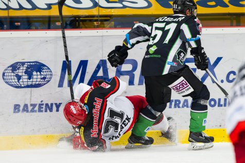 Nedělní střetnutí ve FORTUNA aréně nabídlo boj mezi Hradcem Králové a Mladou Boleslaví, což byl současně souboj o třetí pozici v tabulce. A tomu odpovídal i průběh samotného zápasu, který byl většinu času vyrovnaný. Přestože Mountfield prohrával, klání zásluhou Adama Courchaina srovnal a dovedl až do samostatných nájezdů. Potřetí v řadě tak Východočeši museli o výhru bojovat až nad rámec klasických šedesáti minut. Tentokrát se jim však, na rozdíl od posledních dvou zápasů, bonusový bod získat nepodařilo.