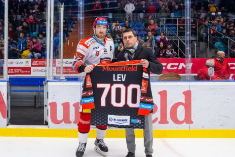 Do nedělního utkání nevstupovali Hradečtí s mnoha změnami. Na marodce stále zůstávali Martin Štohanzl a Ethan Werek, pozitivní byl na druhou stranu návrat Olivera Okuliara. Ještě před utkáním došlo k drobné ceremonii, neboť Jakub Lev již v Třinci nastoupil k 700. extraligovému utkání, oslava však proběhla až na domácí půdě, navíc symbolicky právě proti Škodovce.