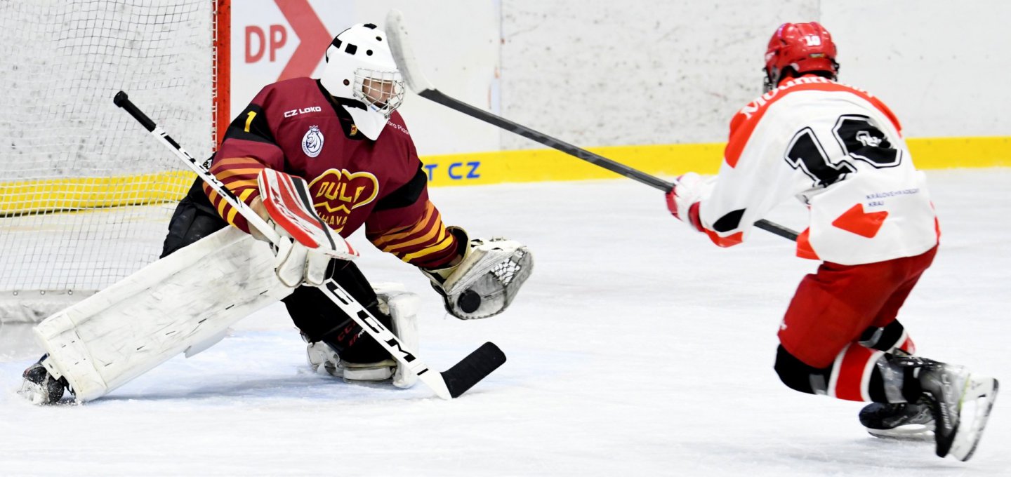 Hradečtí dorostenci šli proti Jihlavě do vedení už ve třetí minutě, kdy skóre otevřel Martin Václavíček, který byl důrazný u pravé tyče a docpal puk za Jana Menšíka – 1:0. Jak ale napověděly další momenty, Dukla se rozhodně nevzdala. Nejprve jen o tři minuty později vypálil z mezikruží Martin Chvátal a kotouč se odrazil k Petru Hospodkovi, jenž z kruhu zavěsil pod víko – 1:1. A v rychlém sledu dostal ve středním pásmu nahrávku Daniel Kytka, vysmýkl se obraně a zasunul za Filipa Růžičku – 1:2. Jak potvrzuje Filip Brzák, nejednalo se o ideální start. „Nám hlavně zezačátku nešly nohy, proto nás přehrávali. A byli docela kombinační, takže jsme si je museli hlídat a jezdit s nimi.“