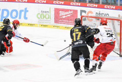 I domácí si vyzkoušeli početní výhodu, ale bez větší příležitosti se za chvílí opět hrálo pět na pět. V posledních deseti sekundách vypálil z levého kruhu ještě Vojtěch Bulat, ale puk se zarazil pouze na vyrážečce gólmana Winkelhöfera, a tak skončila první dvacetiminutovka za stavu 0:0. Do druhé třetiny vlétli oba týmy na plný plyn, ale v cestě dát gól jim stáli skvělý gólmani. Filipa Růžičku prověřil Antonín Vodráček, který mířil do levého horního rohu, ale brankář domácích včas vytasil svoji lapačku a zabránil otevření skóre. Šancí plno, ale gól žádný. Tak by se dala definovat první polovina utkání, které vévodili oba gólmani.