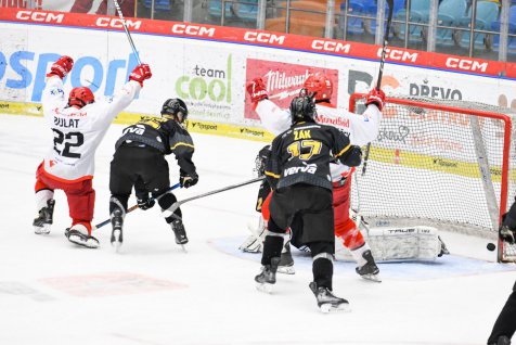Jaroslav Šedivý z mezikruží vypálil na gólmana Vervy, od něho se puk odrazil příhodně pro připraveného Vojtěcha Bulata, který bez potíží trefil odkrytou bránu – 2:0. Litvínov se nevzdal, srovnal a poslal zápas do prodloužení. Nejdříve Karel Müller poslal puk zpoza brány na volného Adama Klempíře, který se trefil mezi beton a tyč – 2:1. Čtrnáct sekund před koncem základní části se nemýlil Jakub Petružálek, který si našel puk na brankovišti a překonal Filipa Růžičku – 2:2. V prodloužení ale udeřil opět Vojtěch Bulat, který kotouč odražený od betonů poslal do odkryté brány a připsal si hattrick – 3:2.