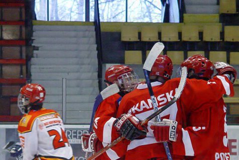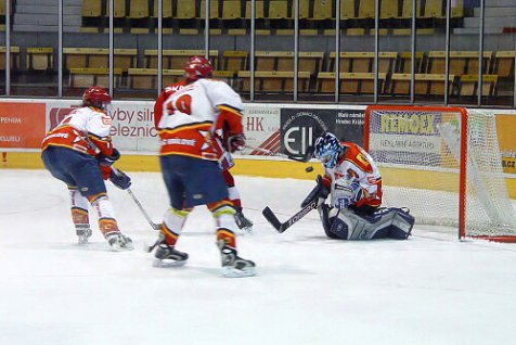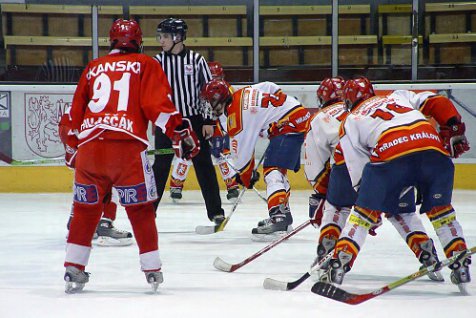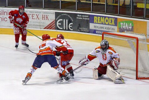Úvodní třetina přinesla vyrovnanou hru obou mužstev. Z velkého množství šancí padla pouze jediná branka, díky které se dostali hosté do vedení. Ve druhé třetině hráči Slavie potvrdili roli favorita a nastříleli Hradci pět branek. Za domácí se do černého trefil Ondřej Matějček. Na začátku poslední dvacetiminutovky snížil Martin Hadrava, jenže hosté si vítězství pohlídali a přidali ještě dvě branky. Hradečtí se tak rozloučili se sezonou vysokou porážkou 2:8, ale cíl v letošním ročníku splnili. Udrželi extraligu.