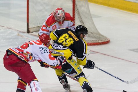 Hradečtí hokejisté nastoupili v pondělí k prvnímu utkání osmifinále. Do Hradce Králové zavítala se silně pozměněným kádrem Kadaň. V první třetině ještě Kadaňští přečkali tlak domácích bez úhony, ale ve druhém dějství už se diváci gólů přece jen dočkali. Vše odstartoval Martin Koudelka, který pěknou tečí otevřel skóre zápasu. Po brankách Jana Hrušky a Jiřího Kadlece už vládl na hokejkách domácích hráčů klid. Kadaň sice ještě stačila snížit, ale Martin Koudelka drama odmítl svou druhou brankou v zápase. Důležité první utkání mají Hradečtí za sebou a v osmifinálové sérii se ujali vedení 1:0.