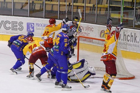 Poprvé pod vedením nové trenérské dvojice Jeřábek – Mička se v letošní sezóně představili hradečtí Energetici domácímu publiku. V zápase s vedoucím týmem soutěže prohrávali 0:1, pak ale kapitán Východočechů Jaroslav Roubík během půl minuty skóre otočil a když přidal v 54. minutě Pavel Suchý v oslabení třetí gól, měli Energetici výrazně nakročeno k vítězství. Vítr z plachet vzal ale Hradci v 56. minutě zkušený Kysela a o další minutu bylo vyrovnáno, před Koutským se prosadil důrazný David Pazourek. Nejvyšší divácká návštěva letošní sezóny se přeci jen výhry svého celku dočkala, o zisku dvou bodů rozhodl v prodloužení Martin Koudelka..