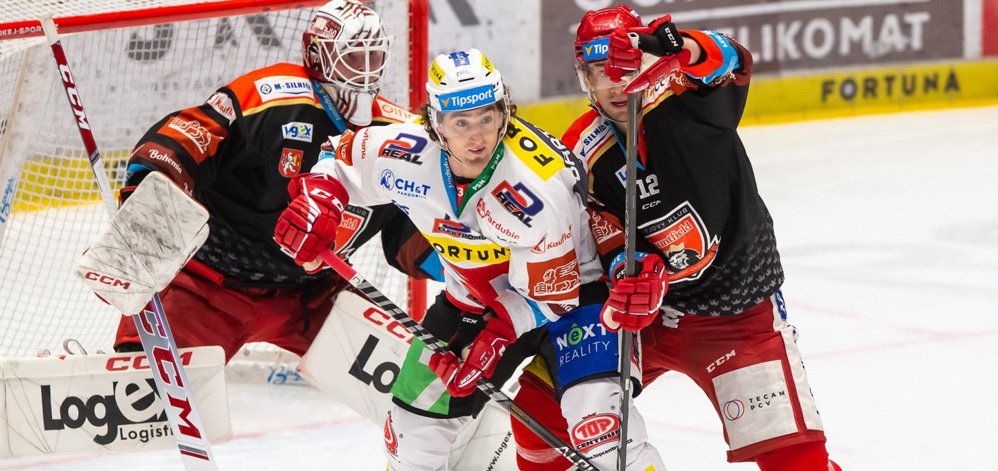 Ani před derby se nevyhnuly hradecké sestavě určité komplikace. Na marodku přibyl nemocný Kevin Klíma, načež v elitním útoku tak dostal prostor univerzál Radek Pilař. Ke svému třetímu extraligovému duelu pro tuto sezonu naskočil Matěj Morong, který byl umístěn do čtvrté formace k Martinu Štohanzlovi a Kryštofu Langovi.
